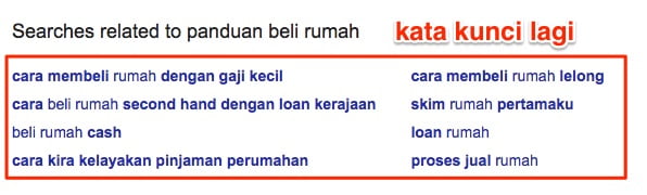 Kedua Google Searches Related.Ini pula adalah perkataan-perkataan cadangan yang muncul di ruang paling bawah.